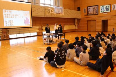 本番では、学校生活の説明や校舎の案内に加え、6年生が楽しめるような「ジェスチャーゲーム」や「自己紹介ビンゴ」を初めて取り入れ、会場は笑いと笑顔でいっぱいになり、来春、一緒に中学校生活ができることが楽しみになりました。