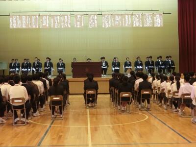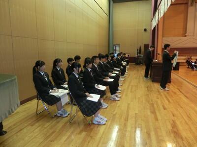 10月23日(木)の5,6時間目に、体育館で新生徒会の役員を選出する「立会演説会」と「投票」を行いました。1,2年生の14名の生徒が立候補し、二中をさらに良くするための公約を堂々と述べ、責任者は立候補者の良さを具体的に紹介してくれました。そのあと体育館の後ろで、3年生の選挙管理委員の指示で、投票をしました。最初から最後まで整然と公正に行うことができました。