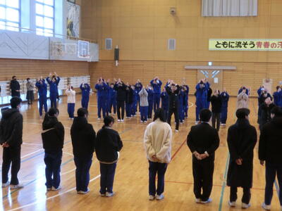 本日9日(金)の6時間目に、3年生への「入試激励会」を行いました。1,2年生の新生徒会の最初の大きな行事であり、昨年末から準備を進めてきました。